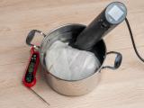 - Mit einem Sous-vide-Gerät: Die Temperatur des Wassers ist dabei sehr präzise und gleichmäßig. Achtung: Nach dem Kochvorgang muss das Sous-vide-Gerät gut gereinigt werden.